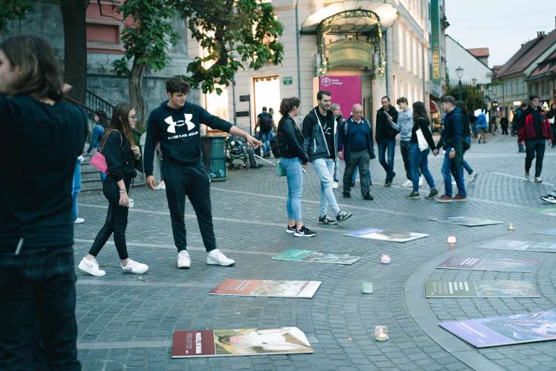 - spodbujanju mimoidočih, da si nadenejo očala virtualne resničnosti, ki prikazujejo razmere, v katerih živijo rejne živali;
